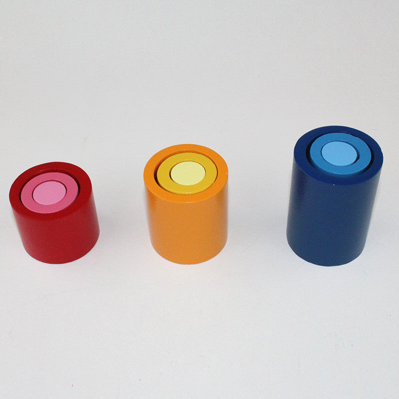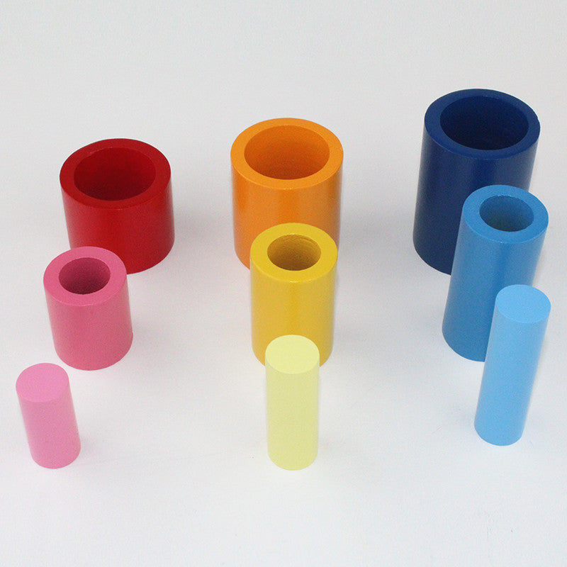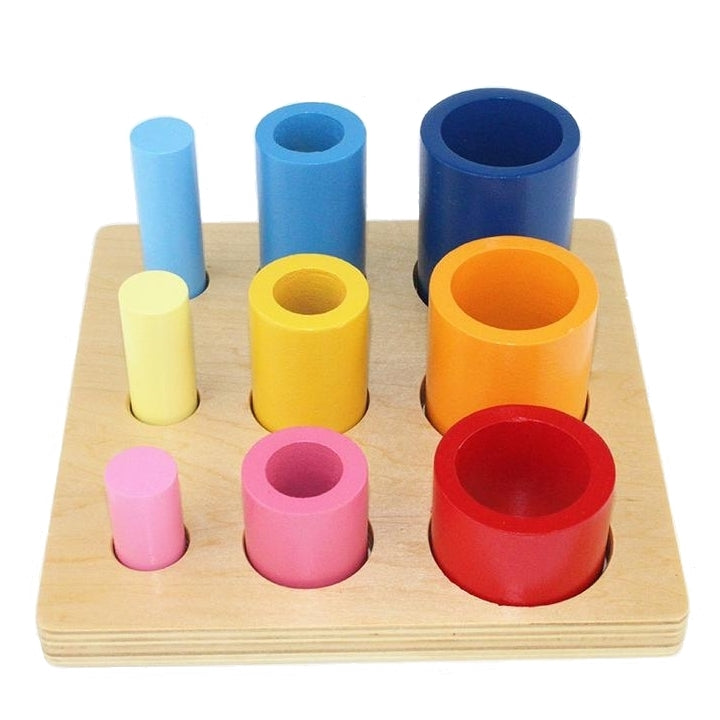 This wooden sensory toy will keep your little one busy. The set encourages color, shapes and sizes recognition. The cylinders fit into one another making it great exercise for a child to practice fine motor skills.
