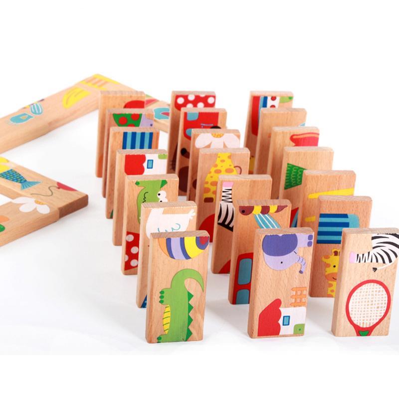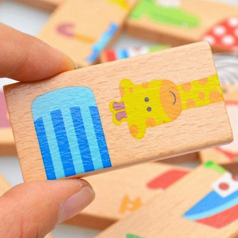 Help little ones master basic matching skills with the Dominoes Wooden Puzzle. The bright colorful and engaging dominoes will bring loads of joy. They help encourage social skills too when played with a friend. Plus, kids can go creative and stack other fancy shapes.