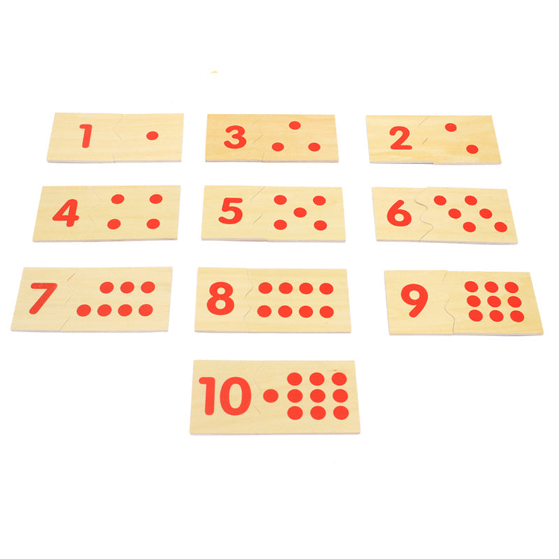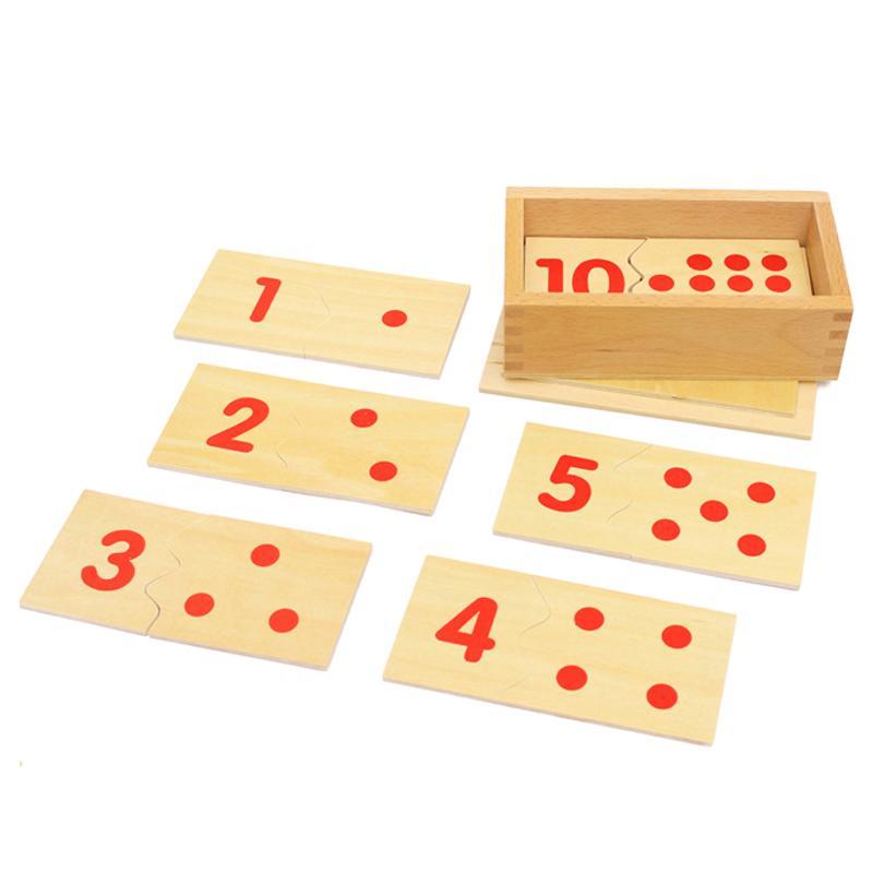 This classic Montessori Matching Number Puzzles set is designed for toddlers to learn and exercise counting 1-10. The child counts the dots and finds matching number card. Great puzzle to encourage development while having fun.